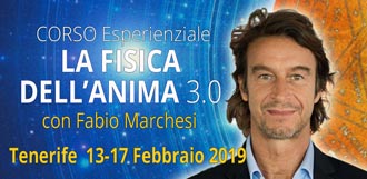 QUOTA ISCRIZIONE al Corso FISICA DELL ANIMA 3.0 con Fabio Marchesi, che si terrà a Tenerife nell'Hotel prescelto in base al numero di iscritti, da Mercoledì 13 a Domenica 17 Febbraio 2019.